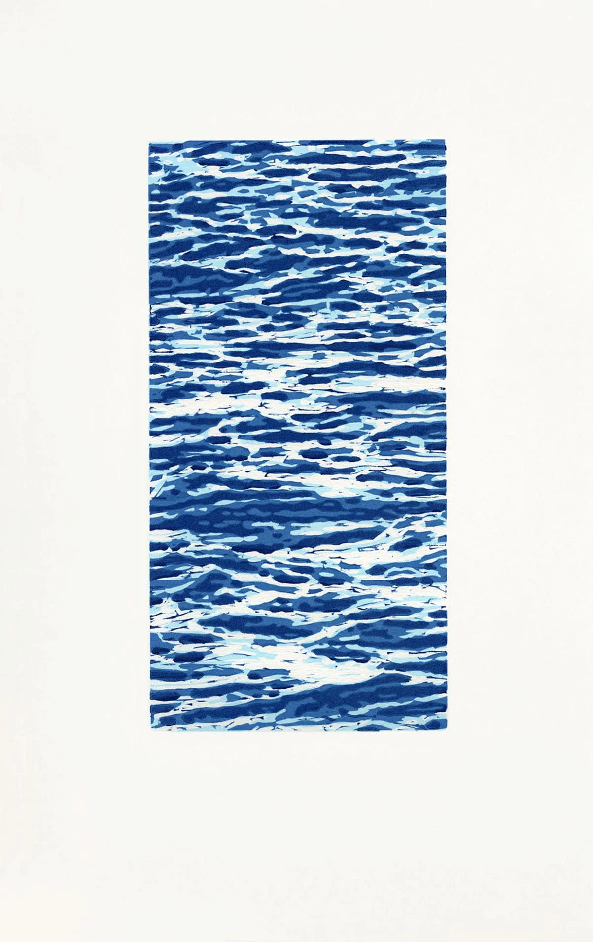 Indigo Water (2025) Woodcut on hand-dyed gampi paper, image size 12 x 9 in., mat size 20 x 16 in.
